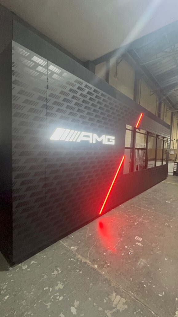 Com a instalação avançando, o painel passou a revelar sua presença no ambiente: uma estrutura metálica robusta, moderna e com acabamento refinado. O resultado traduz exatamente o que foi planejado — um projeto que alia desempenho estrutural e impacto visual.