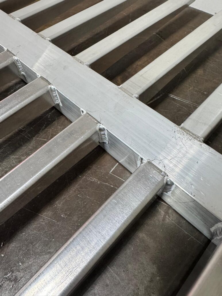 Durante o processo, nossa equipe aplicou técnicas específicas para soldagem em alumínio, material que exige maior controle térmico e habilidade técnica para evitar deformações e garantir a integridade da estrutura.